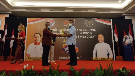 Dalam kesempatan itu, Mirzani Djausal mengucapkan terimakasih kepada PWI karena memperhatikan momen tertentu, bahkan sampai memberikan penghargaan, semoga kedepan lebih erat sinergitas untuk mencapai Design Besar Olahraga Nasional.