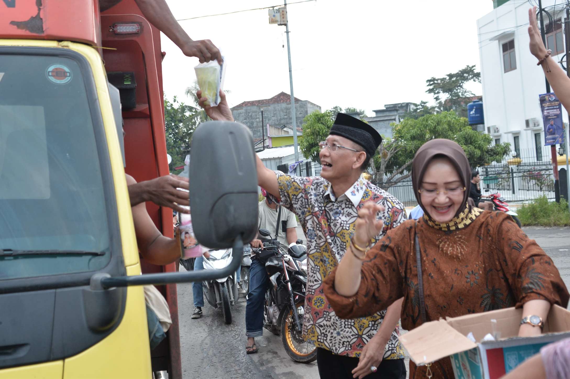PRINGSEWU, REFERENSIRAKYAT.CO.ID – Bakal Calon Bupati Pringsewu Adi Erlansyah beserta istri Nana Adi Erlansyah berbagi takjil dalam rangka safari ramadhan yang ke 21 memasuki bulan suci Ramadhan di tugu Gajah Maliosewu, Sabtu, 30 Maret 2024.