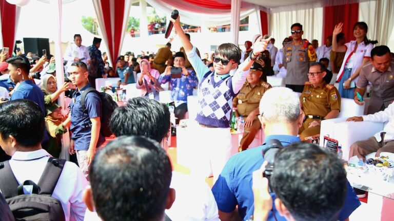 ReferensiRakyat.co.id–Penyanyi cilik Farel Prayoga ikut memeriahkan pembukaan Jumpa Bhakti Gembira (Jumbara) Palang Merah Remaja (PMR) ke-XI yang dipusatkan Stadion Jati, Kalianda, Kabupaten Lampung Selatan, Selasa (4/7/2023).