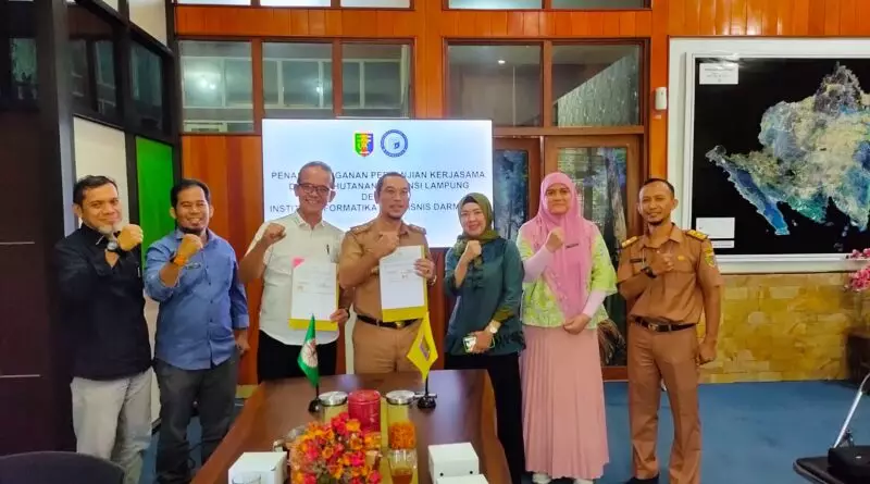ReferensiRakyat.co.id—Institut Informatika dan Bisnis (IIB) Darmajaya dan Dinas Kehutanan (Dishut) Provinsi Lampung menandatangani Nota Kerjasama dalam Pembinaan dan Pengelolaan Hutan Wisata dan Taman Hutan Raya (Tahura), Selasa (8/8/2023)