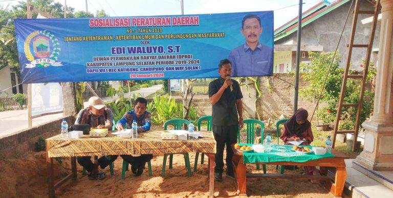 Referensirakyat.co.id–Ketua Komisi II DPRD Lampung Selatan, Edi Waluyo, kembali menyapa konstituennya dalam bentuk kegiatan sosialisasi perda (sosper).