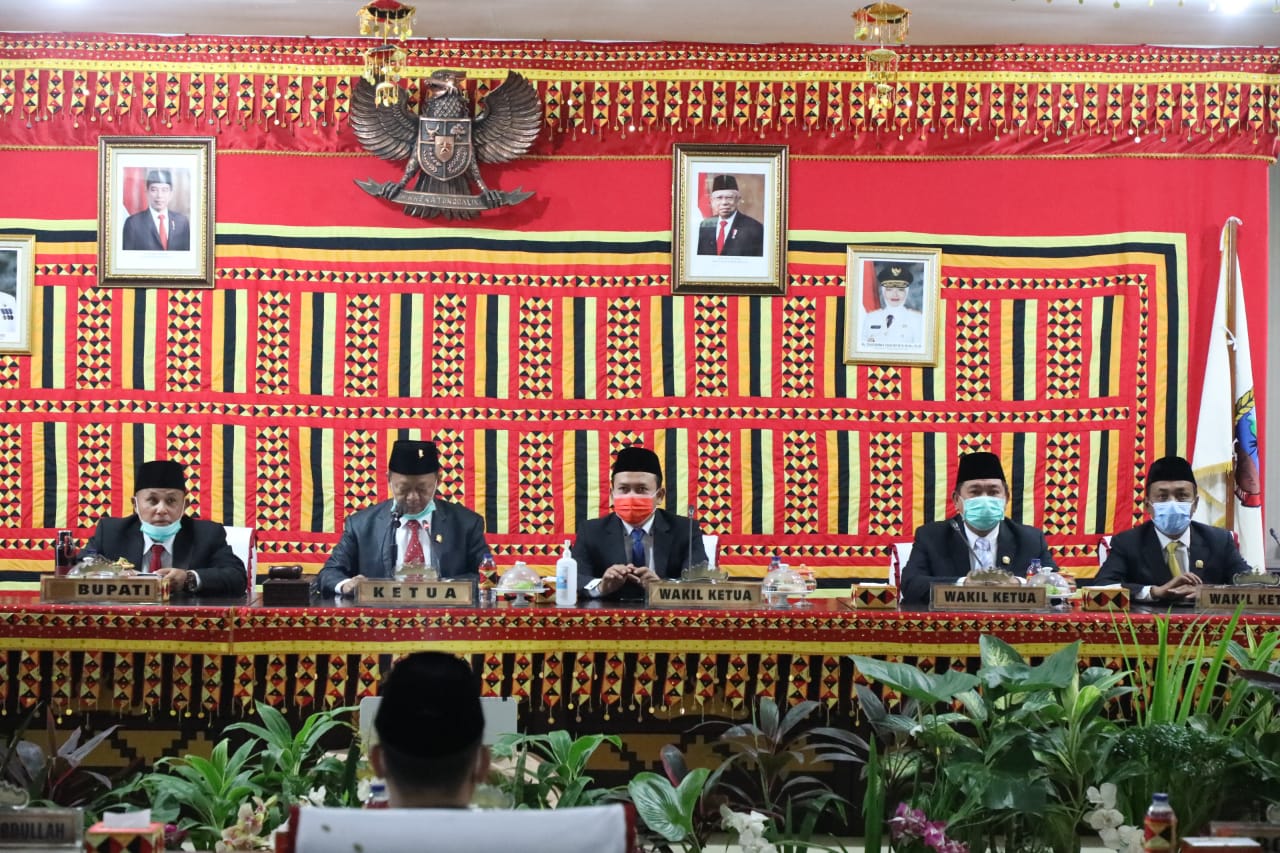 Rapat paripurna tersebut, yakni Ketua DPRD, H. Hendry Rosyadi dengan tiga wakilnya. Sedangkan Bupati Lampung Selatan, H. Nanang Ermanto dan jajaran Forkopimda setempat.