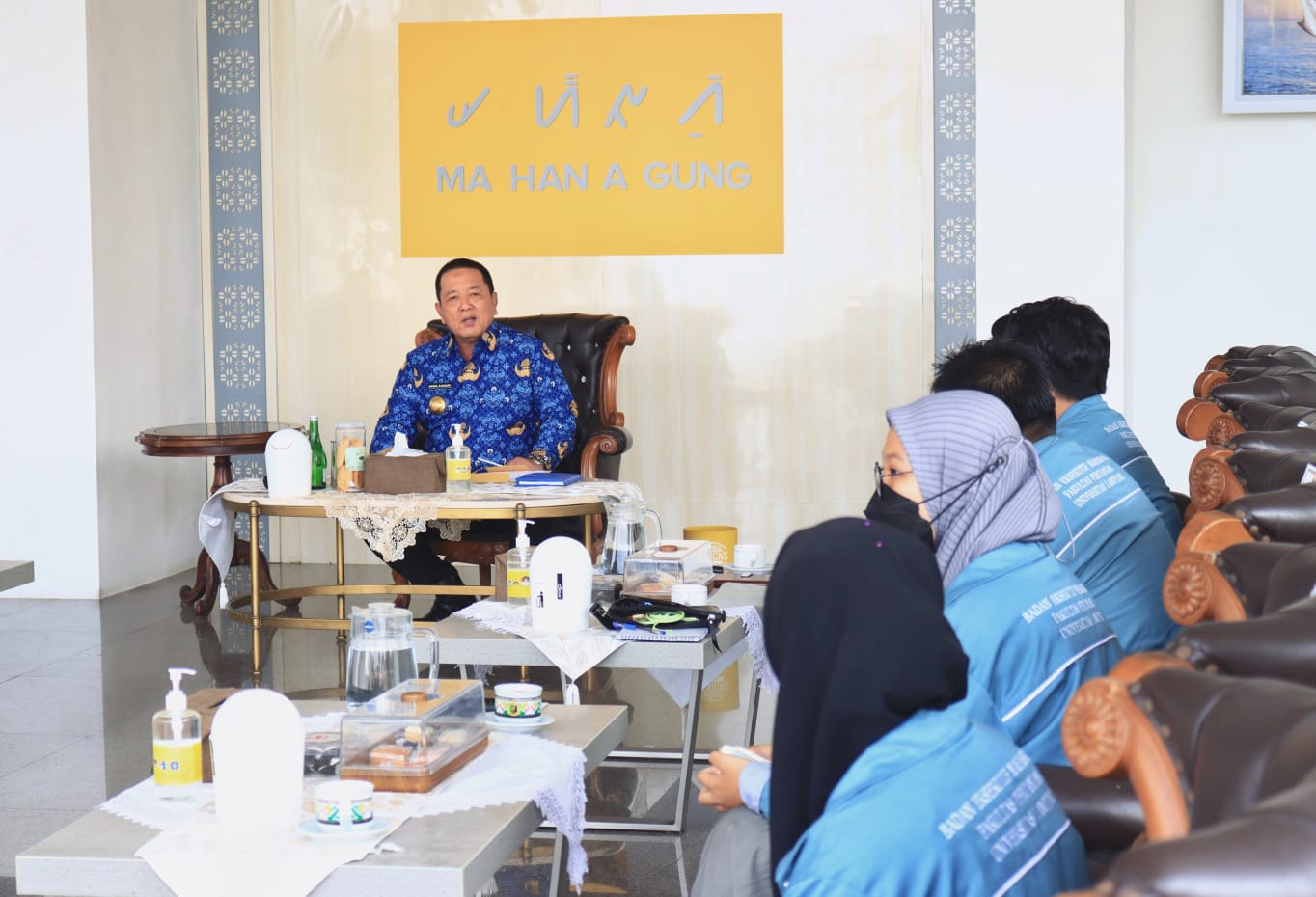 REFERENSIRAKYAT.CO.ID – Gubernur Arinal Djunaidi menerima audiensi Badan Eksekutif Mahasiswa (BEM) Fakultas Pertanian Universitas Lampung, di Mahan Agung, Senin (17/10/22).