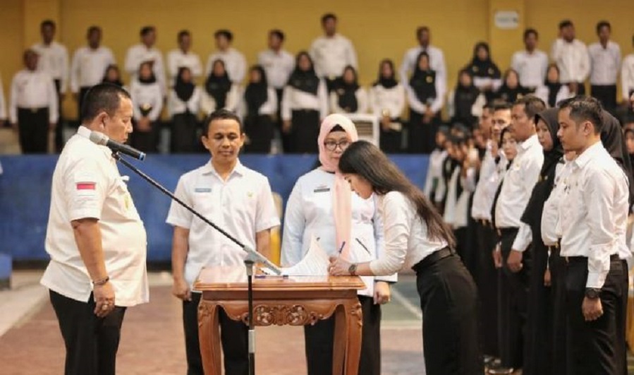 “Sehingga pada hari ini akan dilakukan pelantikan sebanyak 5.377 orang dan akan diangkat sumpah janjinya pada hari ini yang akan dibagi menjadi dua sesi, yang pertama sebanyak 2577 orang, dimana fungsional guru sebanyak 2.274 orang dan fungsional kesehatan sebanyak 303 orang,”