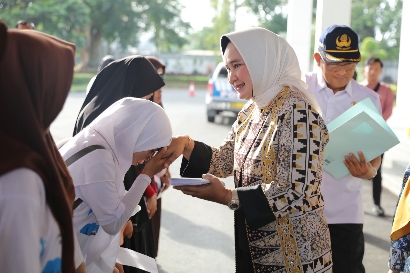 Pada kesempatan tersebut juga, Ibu Riana memberikan bantuan berupa uang saku dalam rangka menunjang kegiatan para peserta nantinya.