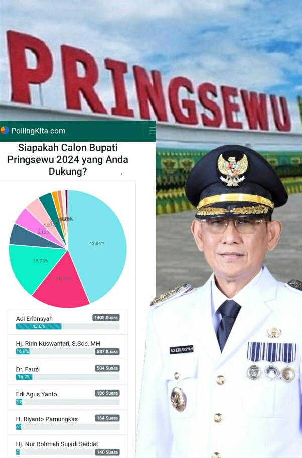 Berdasarkan hasil survei Pollingkita.com 2024, nama Adi Erlansyah Calon Bupati Pringsewu paling kuat. Hal itu lantaran Ia terus bertahan menduduki posisi teratas sebagai calon bupati kabupaten berjuluk Bumi Secancanan itu.