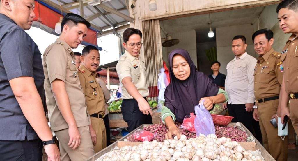 Pada kesempatan itu, Egi berdialog langsung dengan para pedagang guna memastikan harga bahan pokok yang tersedia.