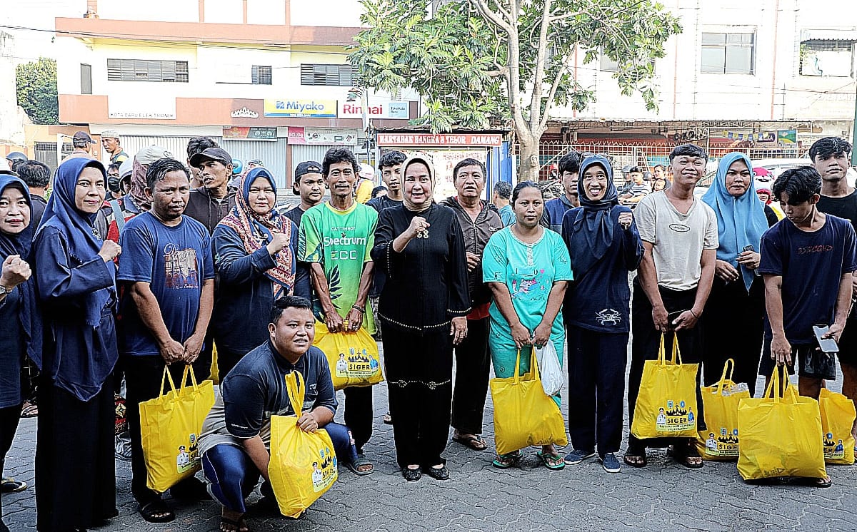 Ketua TP PKK Provinsi Lampung Beri Bantuan Sembako dari Program Siger kepada Karyawan Toko, Pedagang dan Pemulung di Sekitar Kediaman Gubernur