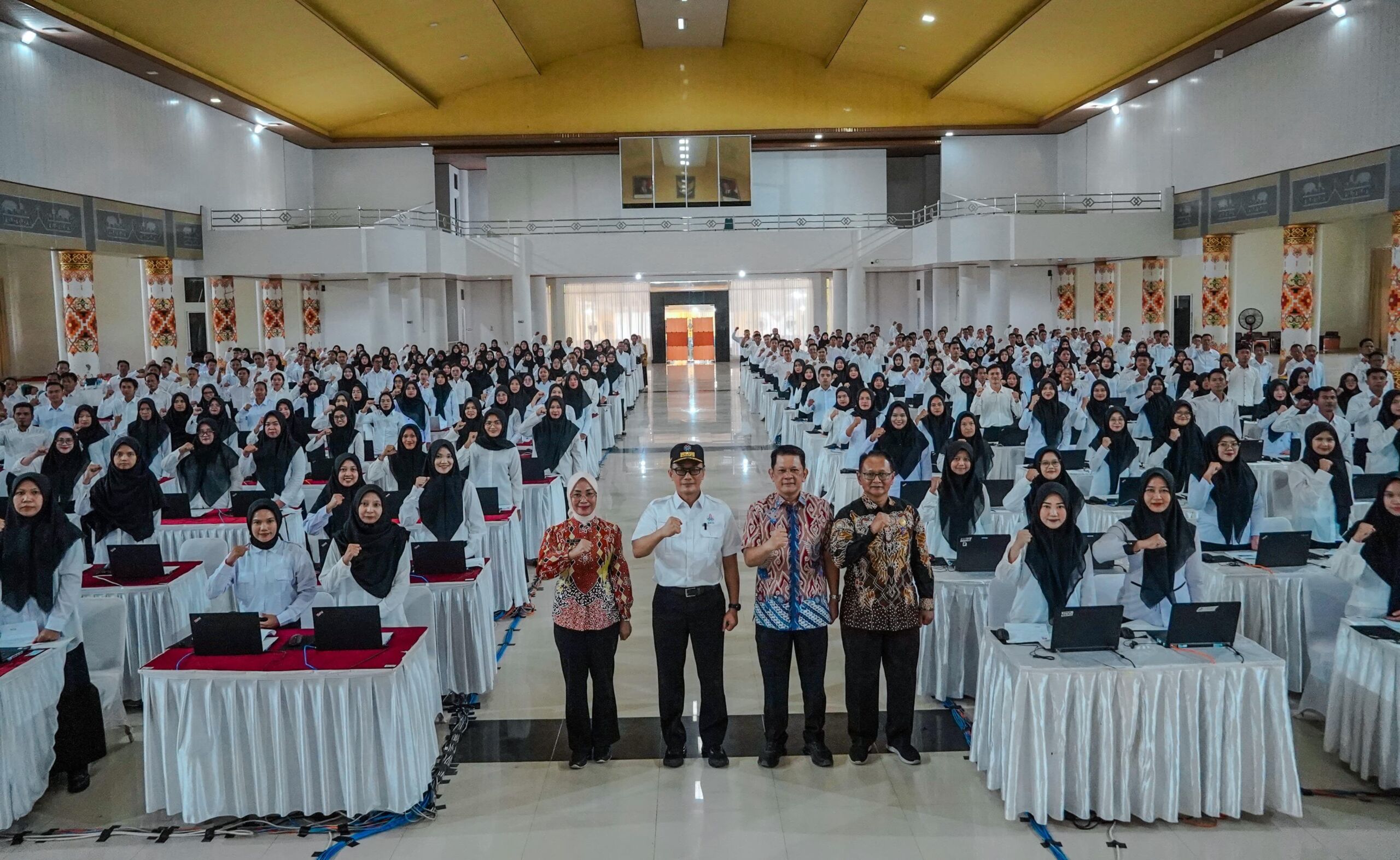 “Saat ini adalah sesi ke 2 pesertanya 300 orang hadir semua, sebelumnya tadi jam 8 sesi pertama sudah selesai 298 yang hadir, 2 berhalangan kita belum mendapat keterangan yang berhalangan ini. Yang 300 ini mudah-mudahan berjalan lancar,” ucapnya.