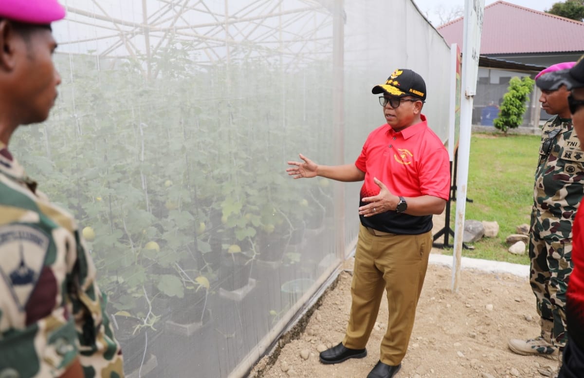 ReferensiRakyat.CO.ID – Pj. Gubernur Lampung Samsudin mengunjungi budidaya melon hasil tanaman para prajurit Korps Marinir di Green House Budidaya Melon Inthanon di Brigif 4 Mar/BS, Padang Cermin, Kabupaten Pesawaran.