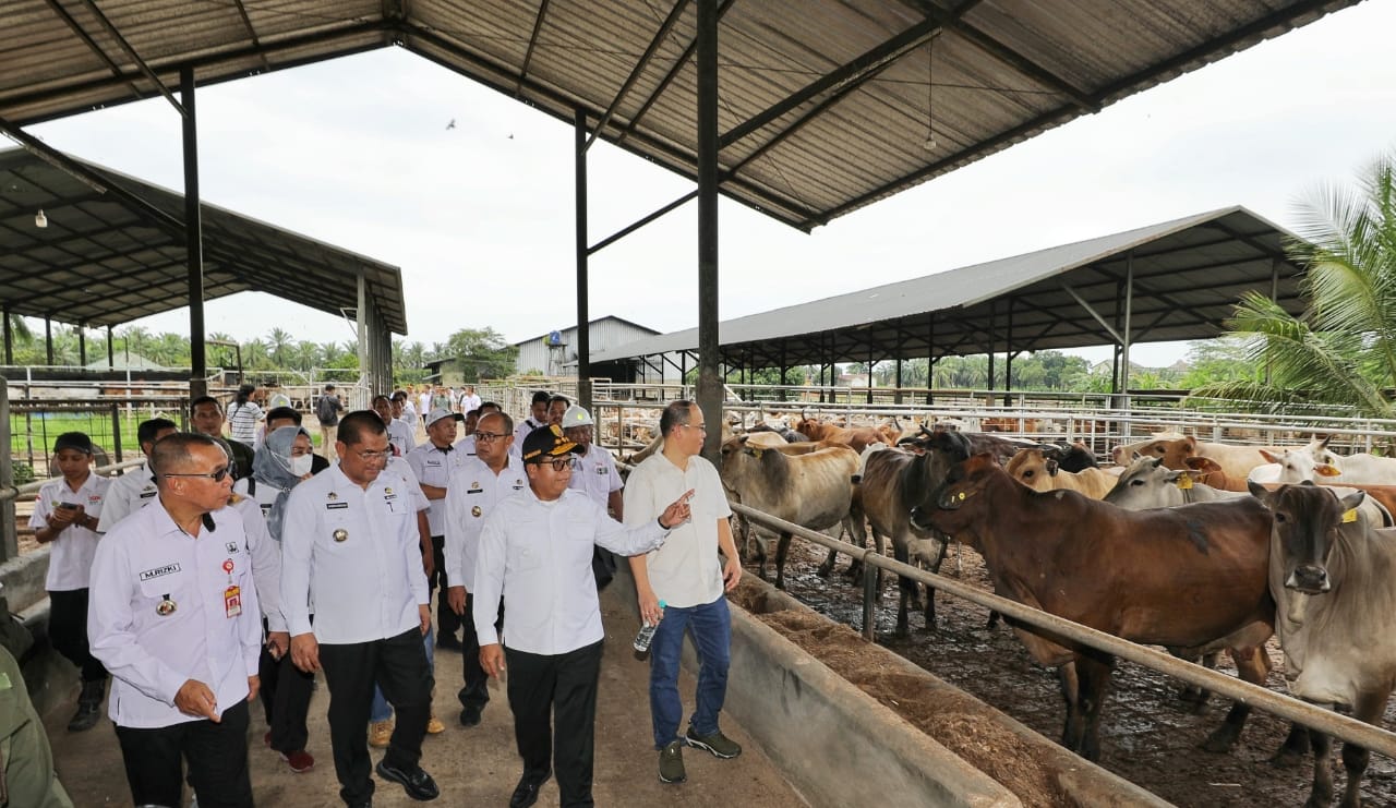 ReferensiRakyat.CO.ID – Pj. Gubernur Lampung Samsudin mengunjungi usaha peternakan sapi potong hasil integrasi perkebunan sawit dengan perusahaan peternakan di Desa Candimas, Abung Selatan, Lampung Utara.