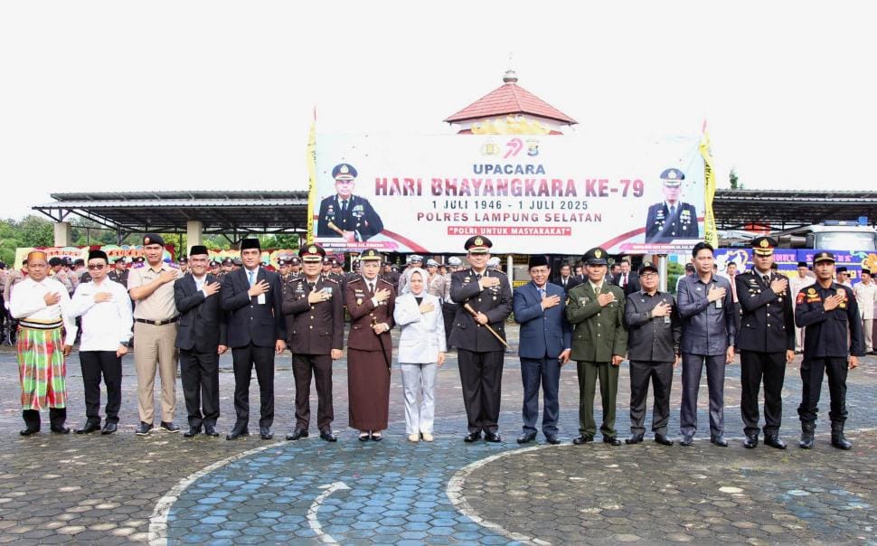 Peringatan hari Bhayangkara ke-79 berlangsung khidmat di halaman Mapolres Lampung Selatan pada Selasa, 1 Juni 2025.