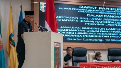 ReferensiRakyat.CO.ID – Gubernur Lampung ,Rahmat Mirzani Djausal menyampaikan apresiasi kepada seluruh fraksi DPRD Provinsi Lampung…