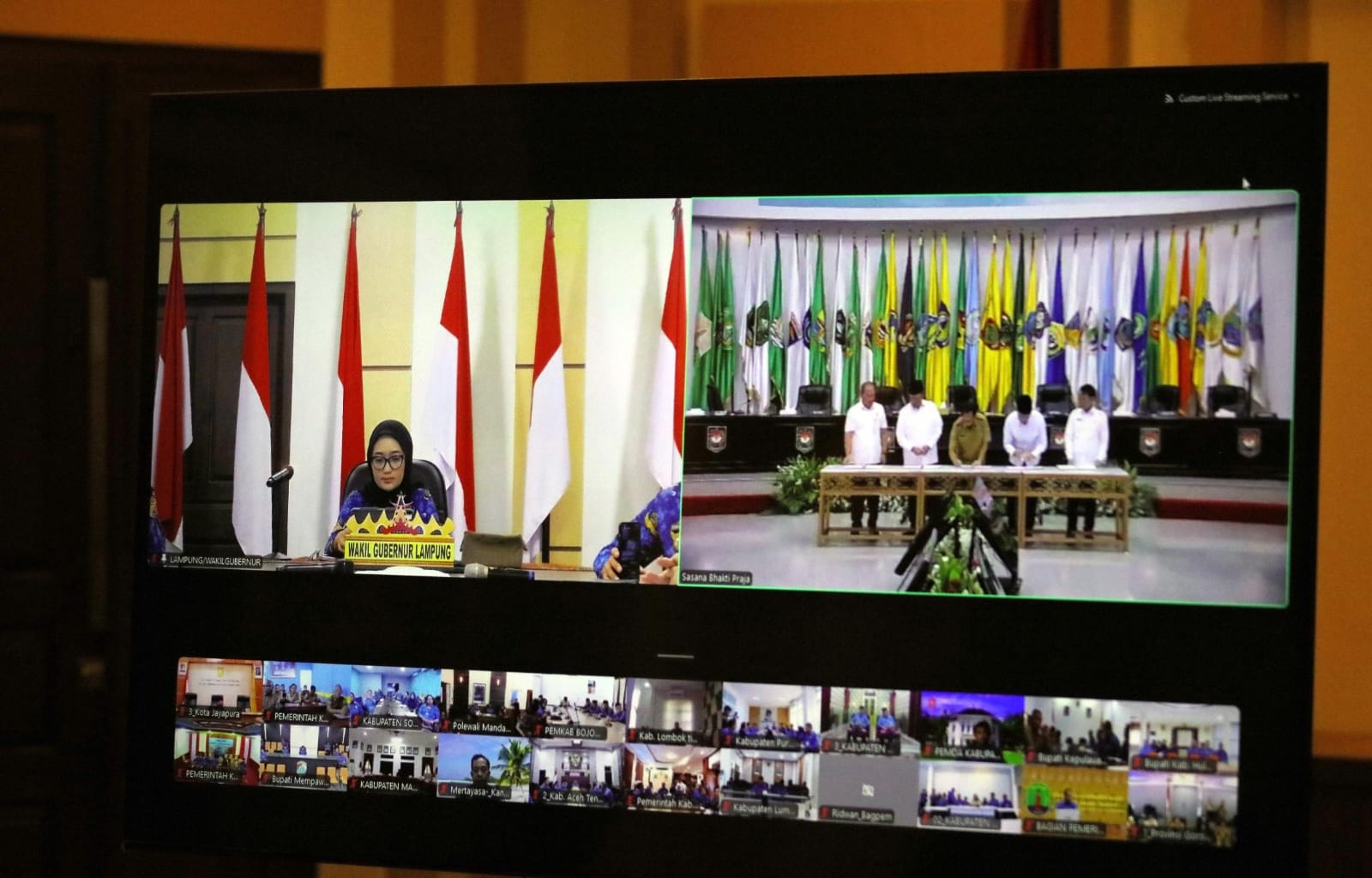 Kegiatan rakor ini dilaksanakan di Ruang Sakai Sambayan, Kantor Gubernur Lampung pada Senin, 17 Maret 2025. Turut hadir Menteri Kesehatan Budi Gunadi Sadikin, Direktur Jenderal Perumahan Perkotaan Kementerian PKP Sri Haryati dan dihadiri secara virtual oleh seluruh Kepala Daerah.